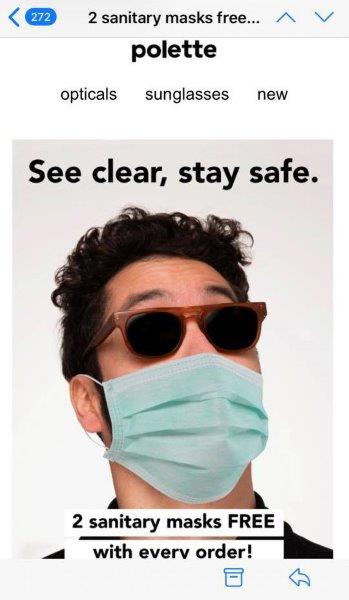 Riding the back of this, at the beginning of the outbreak in Europe in March, Polette thought it was a good idea to run a See clear, stay safe promotion giving away two free face masks with every purchase. The response was immediate and angry, upsetting about 95% of the company’s followers on social media.